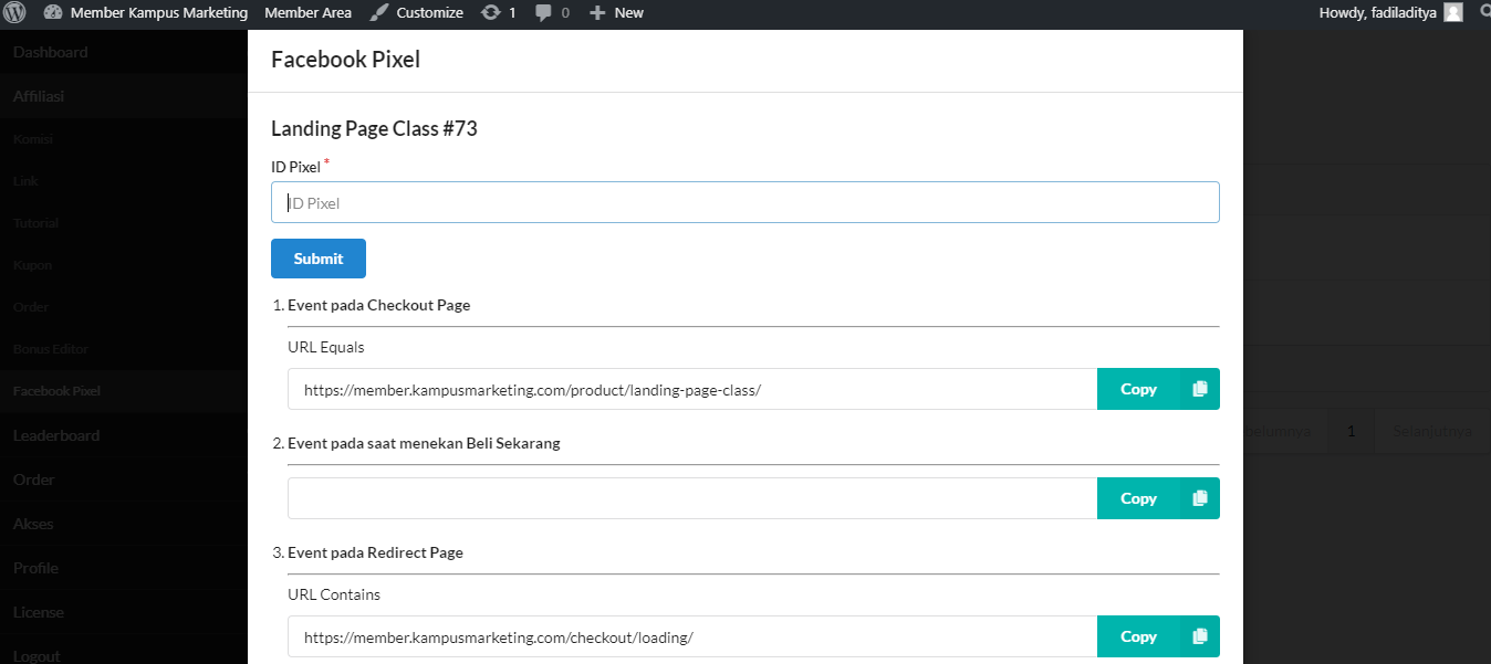 Kamu bisa tanamkan Facebook Pixel di setiap halaman checkout page penjualan