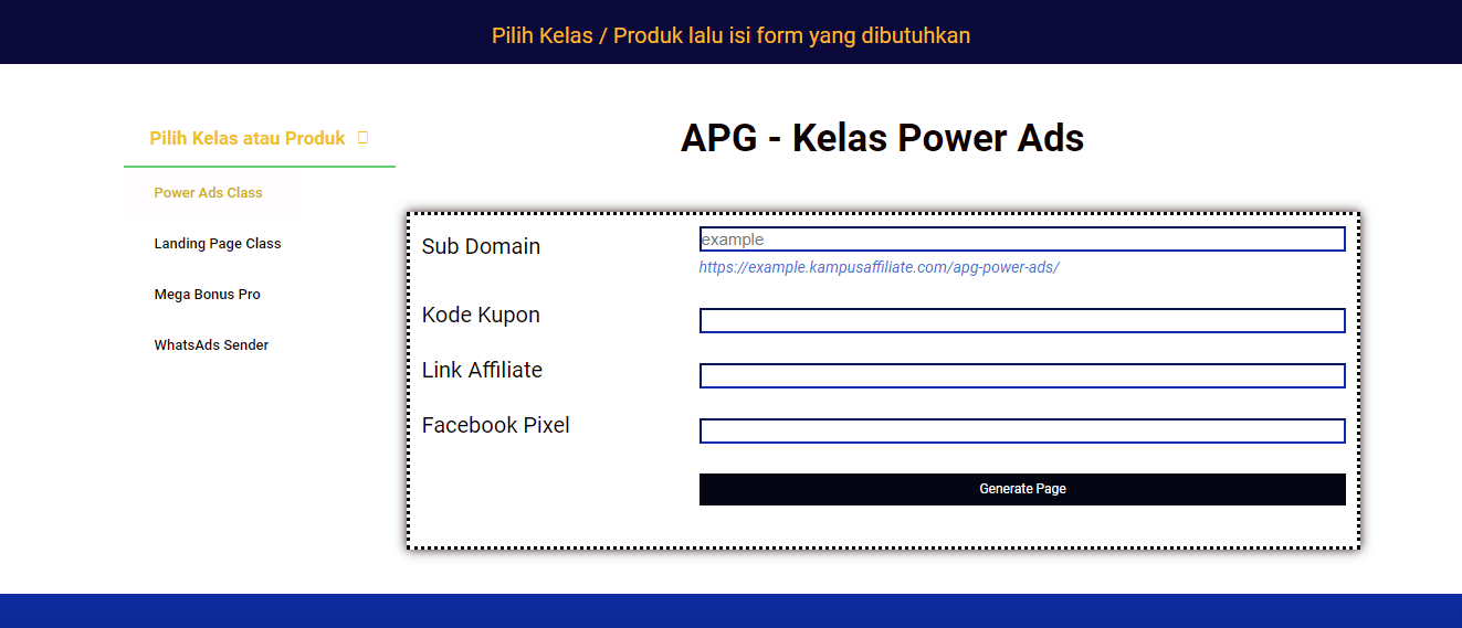 Otomatis membuat sales page anda tanpa perlu beli domain & hosting dengan cukup mengisi form generator
