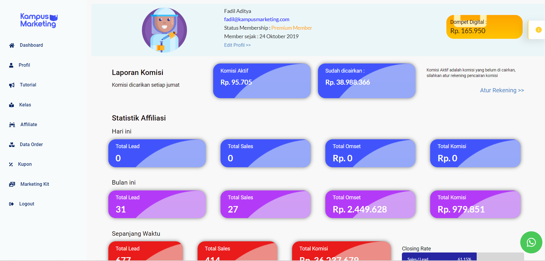 Yaitu wadah untuk siapapun anda yang ingin menjadi Affiliate di Kampus Marketing, dengan membantu mempromosikan kelas/produk Kampus Marketing untuk memperoleh komisi