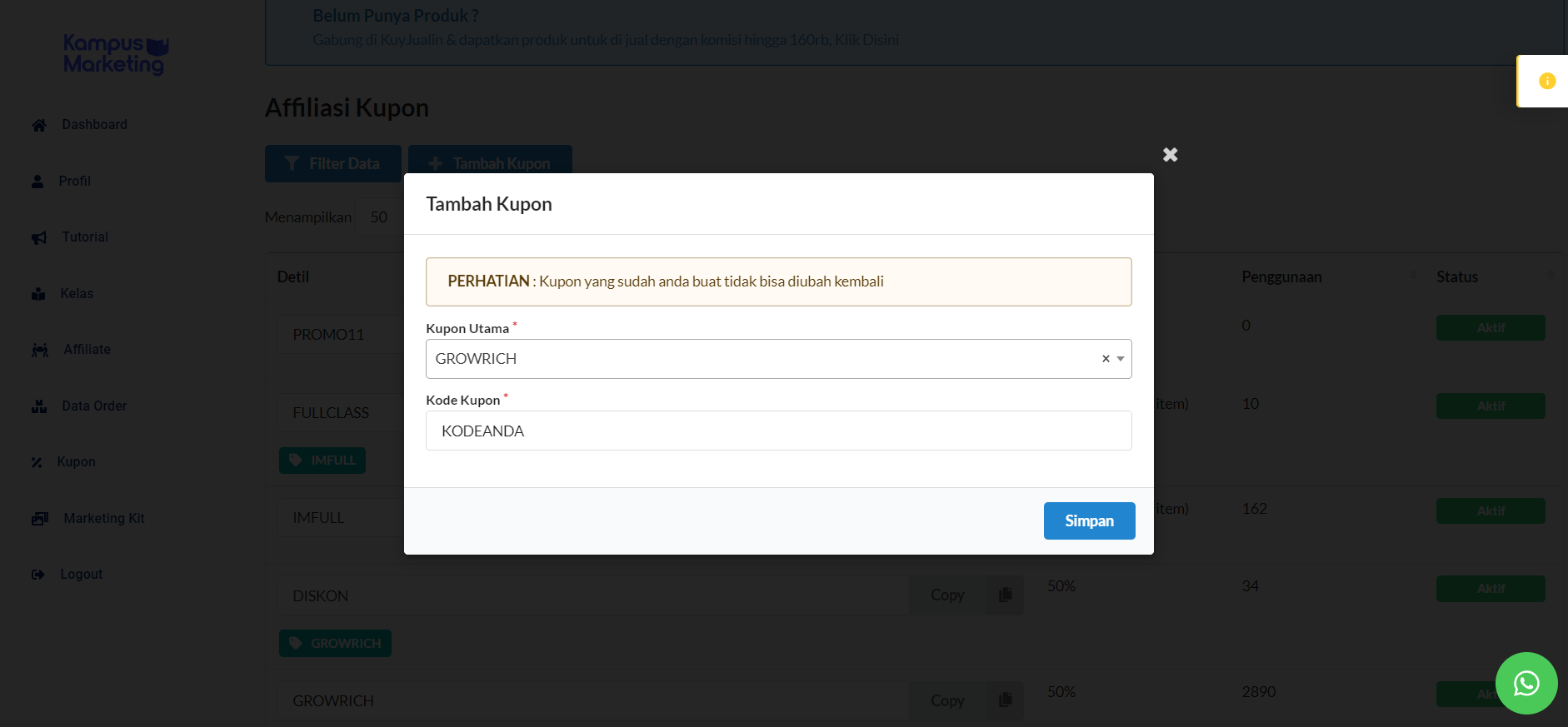 Kampus Affiliate by Kampus Marketing Menjadi Bagian Perjalanan Bisnis Anda